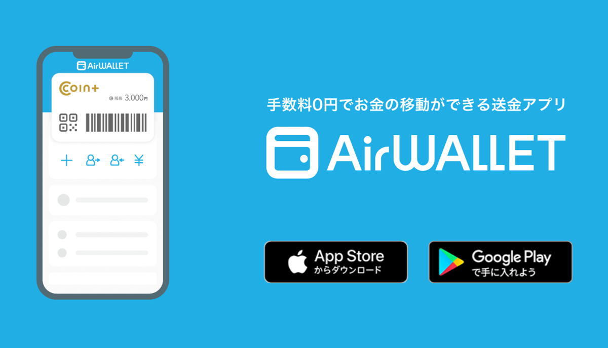 「エアウォレット」とはリクルートと三菱UFJ銀行がつくったお店でも使える新しい決済ブランド「COIN+」を利用してチャージ・支払い・送金・出金が無料でできるアプリです。